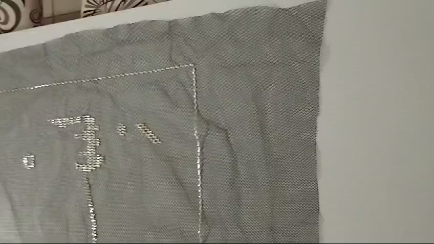 Siyah bal peteği tül üzerine gümüş renkli tel ile işlenmiştir.